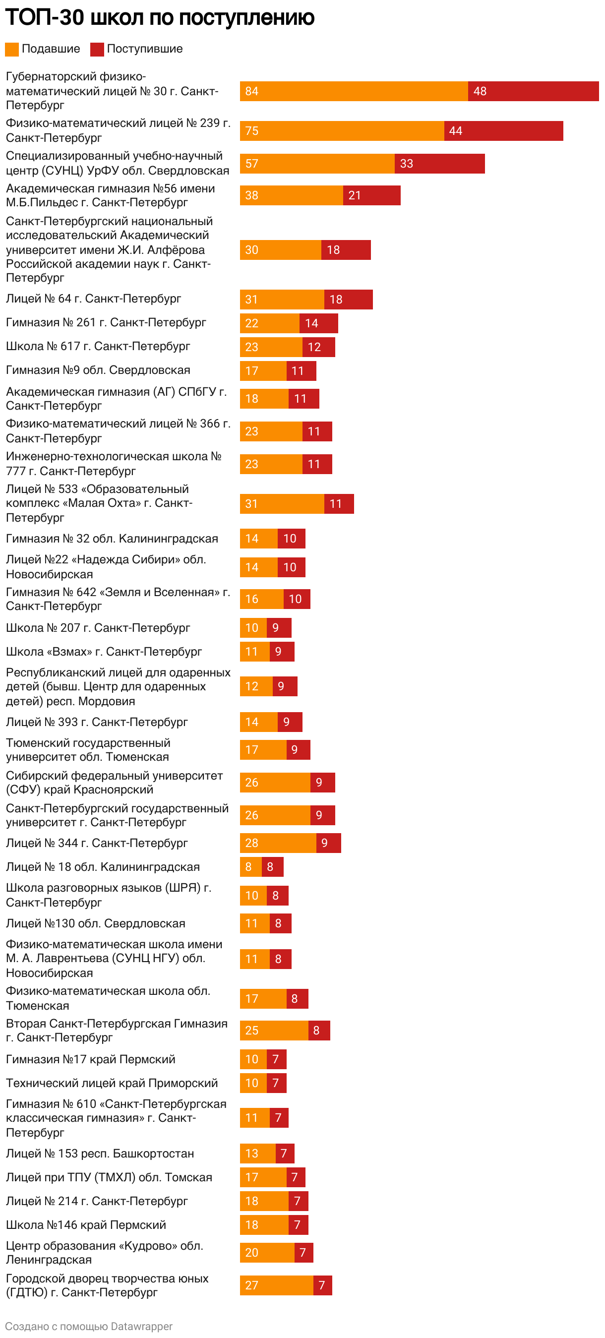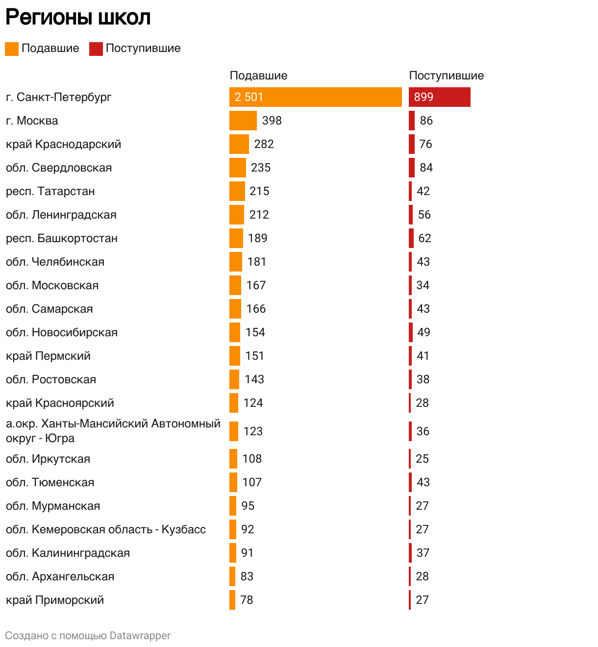 Регионы и школы, из которых поступают абитуриенты